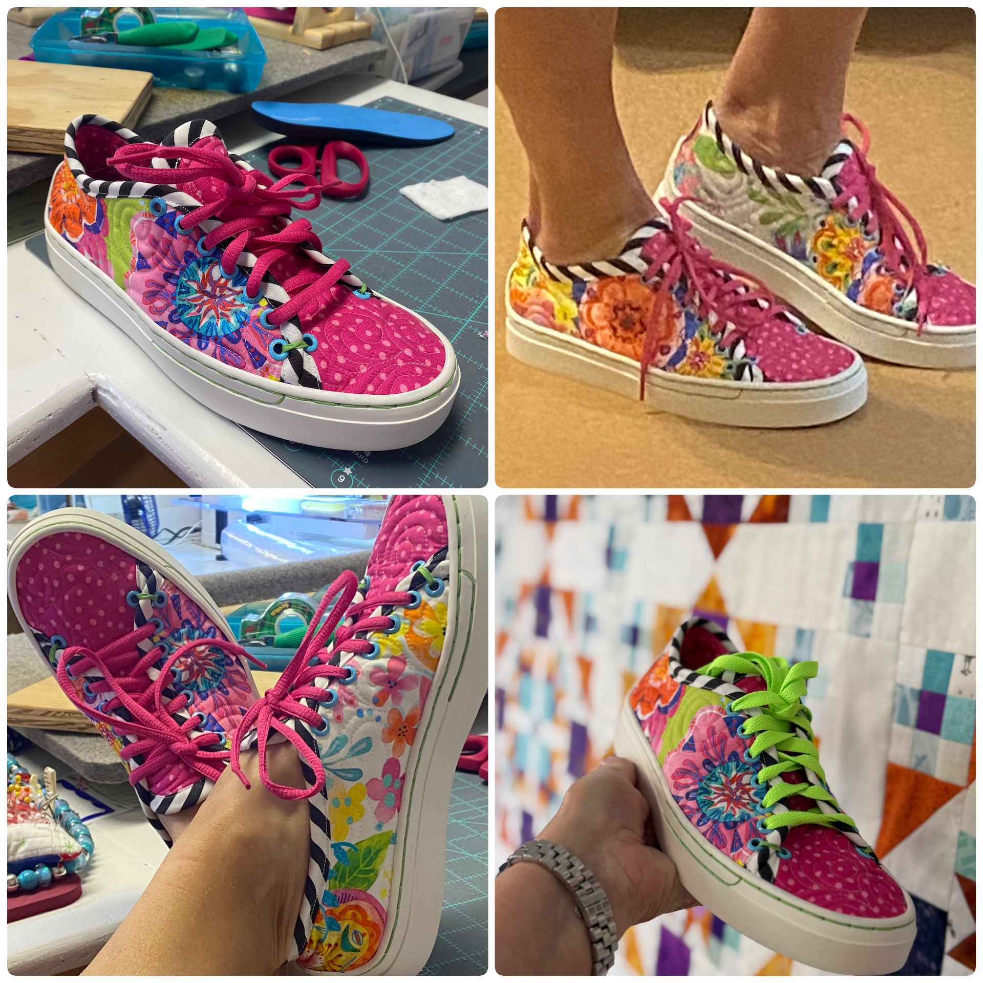 Last year we all came with a pre-quilted piece of fabric for the shoes, this year we will be piecing the fabric for the tops and they are soooo cute!!